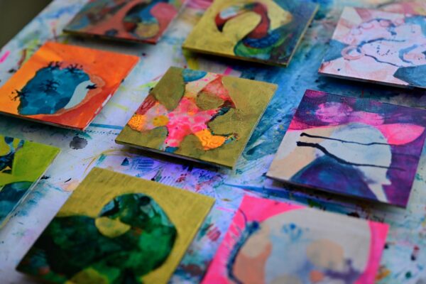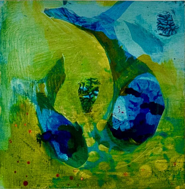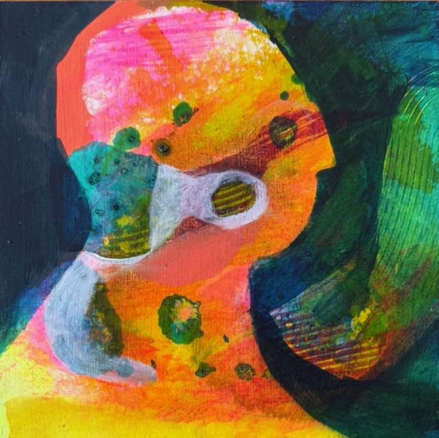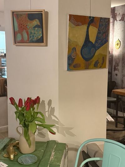 Die Auswahl der Arbeiten orientierte sich an den vorhandenen Wänden. Da nur wenig Platz für größere Arbeiten vorhanden ist, sind diesmal mehr Kleinformate zu sehen. Für große Formate gibt es nur begrenzt Raum, deshalb sind diesmal mehr kleinere Arbeiten zu sehen. Neben einer Auswahl meiner Henry-Bilder zeige ich erstmals Werke aus der neuen Serie „Auf kleinem Quadrat“.