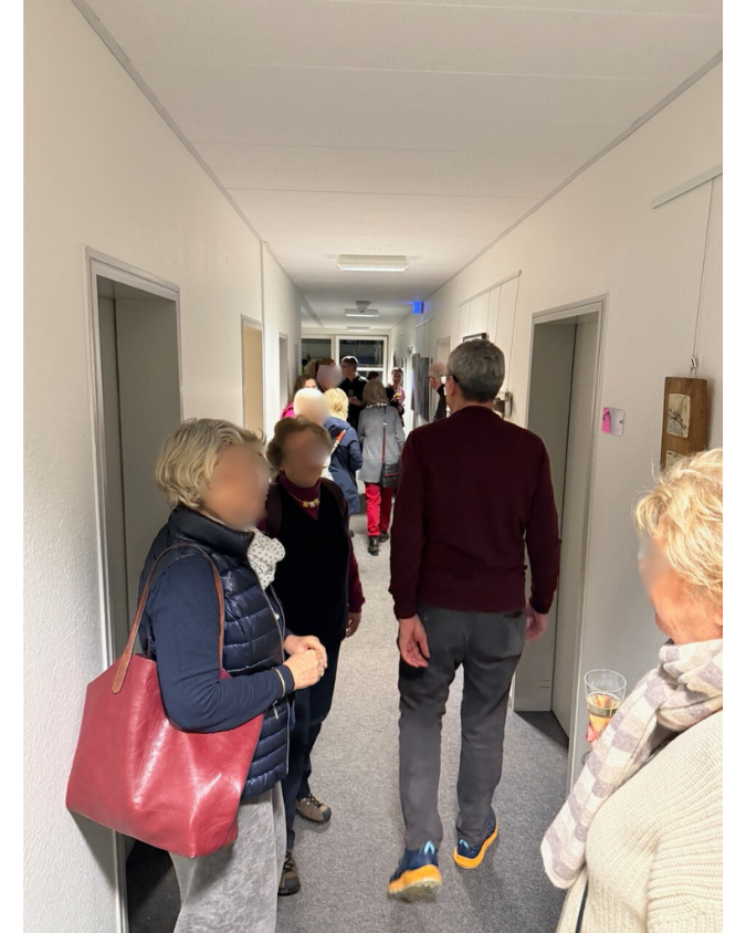 Die Ausstellung befindet sich im 1. Stock des VHS Gebäudes. Die räumlichen Bedingungen waren nicht einfach: enge Flure, verwinkelte Bereiche und ein Licht, das einiges abverlangt. Umso beeindruckender finde ich, wie stimmig die Hängung gelungen ist. Die Arbeiten bekommen Raum, stehen miteinander in Beziehung und tragen den Ausstellungstitel sichtbar weiter.