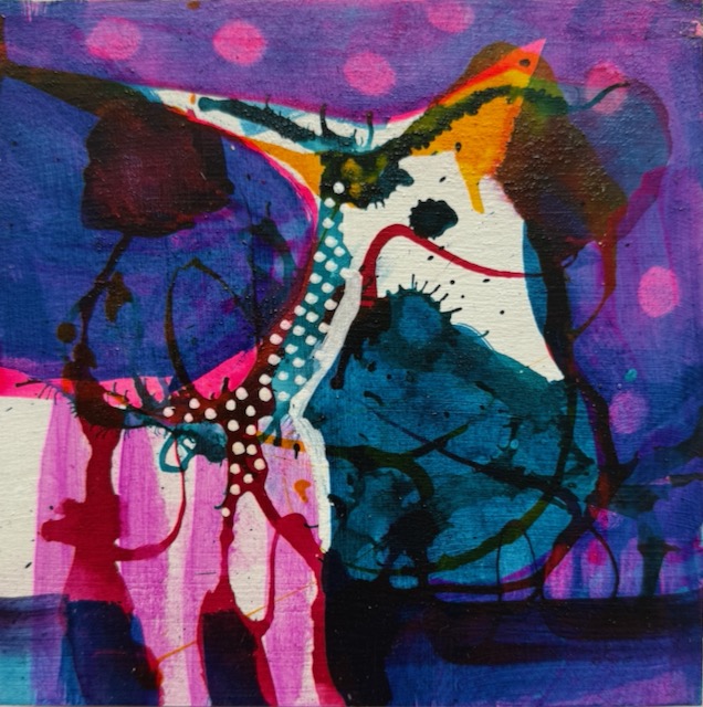 Aus zufälligen Strukturen entsteht Fabelhaftes, Humoriges, Rätselhaftes oder einfach Schönes. Leuchtende Farben verbinden sich mit Linien, Spuren und Überlagerungen. Neuerdings ist auch viel Gold im Spiel.